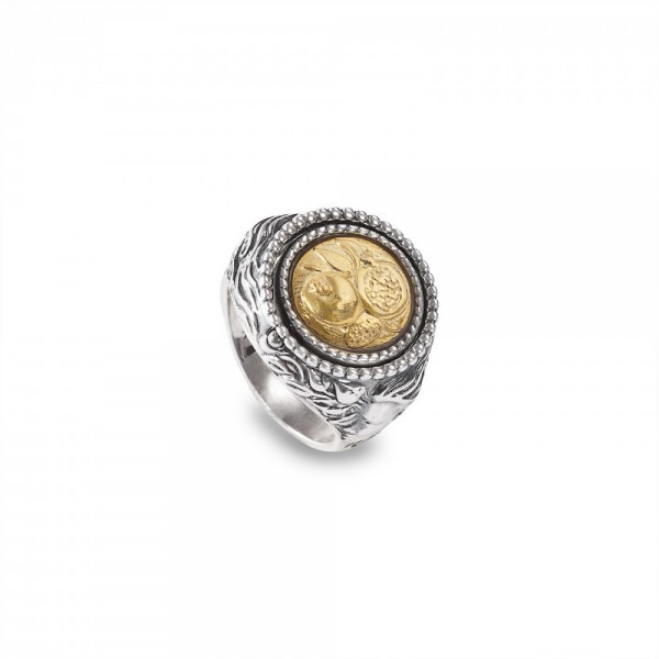Anello reverse in Argento con simbolo del mese di Novembre e pietra dellAutunno. Sul gambo dellanello in argento 925/000 raffigurato il volto di Demetra, dea greca artefice del corso delle stagioni, mentre lelemento centrale girevole presenta su un lato il simbolo del mese, i melograni in argento placcato Oro 24 kt, e sullaltro un cristallo sfaccettato ambra, il colore dellAutunno. Tra tradizione e innovazione, simbolismo e colore, scegli tu quale verso dare al tuo look!