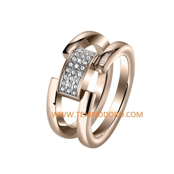 Anello In Acciaio Lucido Con Trattamento Ip Oro Rosa e Cristalli Bianchi TJ1641 TJ1641