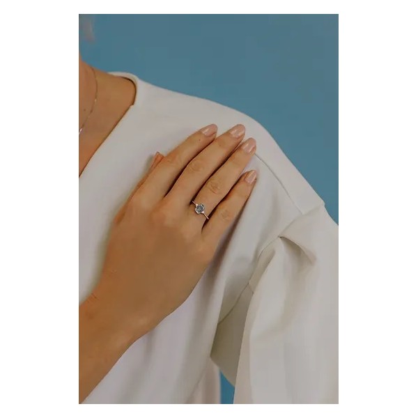 Anello Comete, collezione fantasia di colore in Oro bianco 750,con Acquamarina Ovale CT 0.40 e Diamanti taglio brillante Ct 0.04 colore G purezza SI.