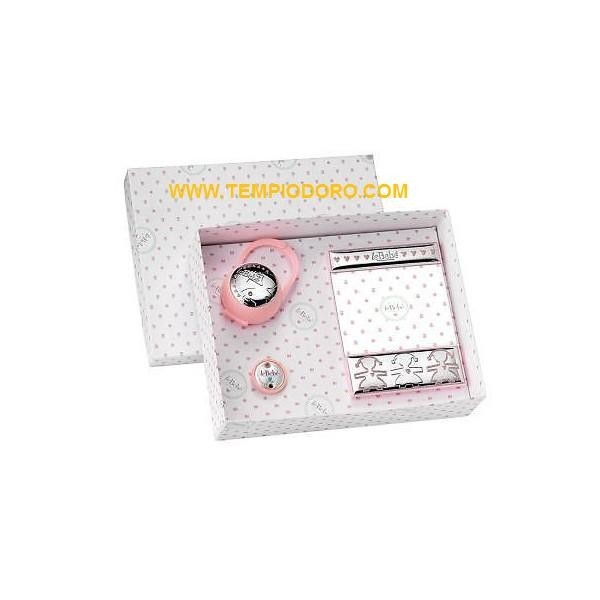 Il Kit Bimba Le Beb? ? un set composto da cornice a giorno, portaciuccio, pinzaciuccio. La Cornice ? in argento bilaminato e smalto. Si allegano garanzia astuccio e shopper SPEDIZIONE GRATUITA