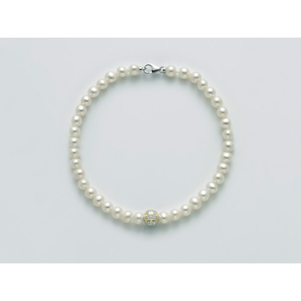 Bracciale Miluna in perle della collezione oro brillante, con perle dal diametro 4-4,5 , sfera dal diametro 6 mm in oro bianco con sfaccettature in oro giallo , lunghezza del bracciale è 19 cm. Si allegano astuccio ,garanzia e shopper lusso.