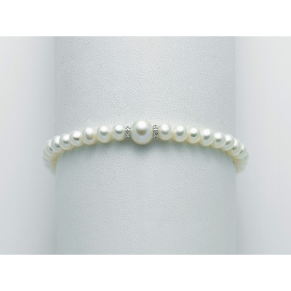 Bracciale Miluna in perle della collezione i bracciali portafortuna, con 6 diamanti naturali taglio brillante CT0.024 purezza SI colore G, con intramezzi in oro 750/1000 18Kt , perle dal diametro 5-5,5,concperla centrale 7,5-8 mm, la lunghezza del bracciale è di 19 c m. Si allegano astuccio ,garanzia e shopper lusso.