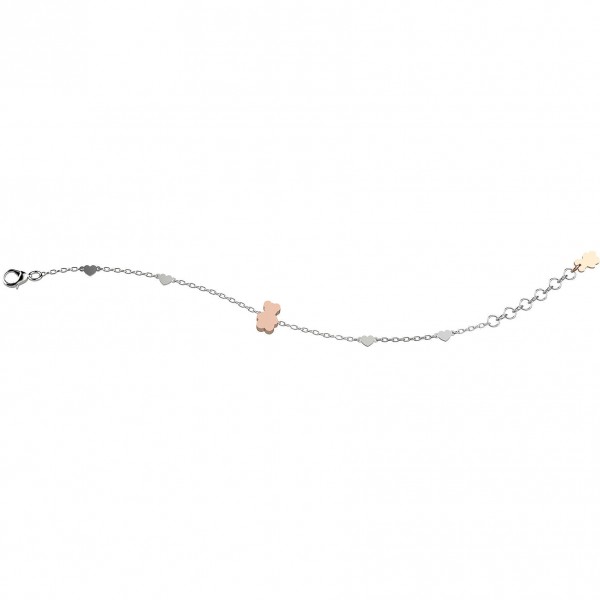 Bracciale Nanan Bijou, bambino e bambina, in argento 925,con inserti di cuoricini satinati e orsacchiotto in oro rosè, lunghezza fino a cm 16. Si allega confezione Nanan, certificato di garanzia e shopper luxury.