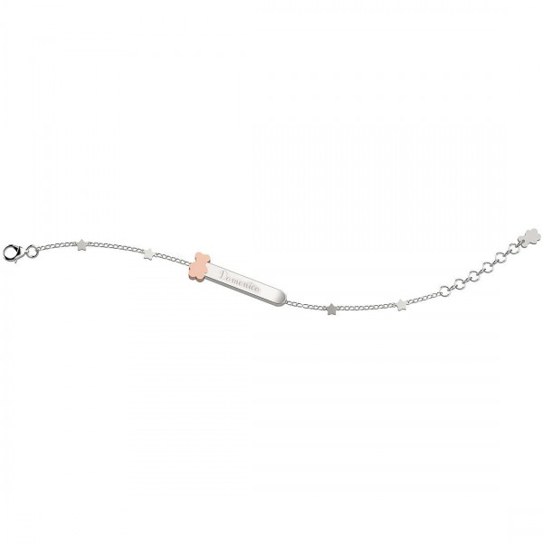 Bracciale Nanan Bijou, bambino e bambina, in argento 925,con inserti di cuoricini stelline e orsacchiotto in argento rosè satinato, targhetta personalizzabile, lunghezza fino a cm 16. Si allega confezione Nanan, certificato di garanzia e shopper luxury.