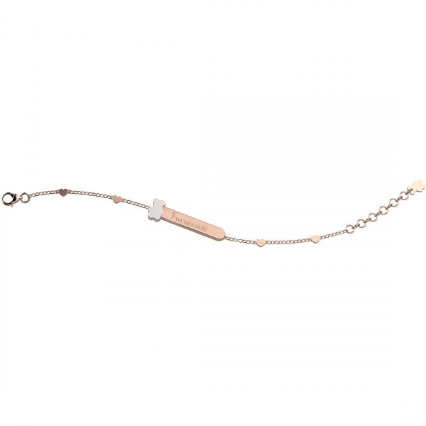 Bracciale Nanan Bijou, bambino e bambina, in argento rosé 925,con inserti di cuoricini e orsacchiotto in argento satinato, targhetta personalizzabile, lunghezza fino a cm 16. Si allega confezione Nanan, certificato di garanzia e shopper luxury.