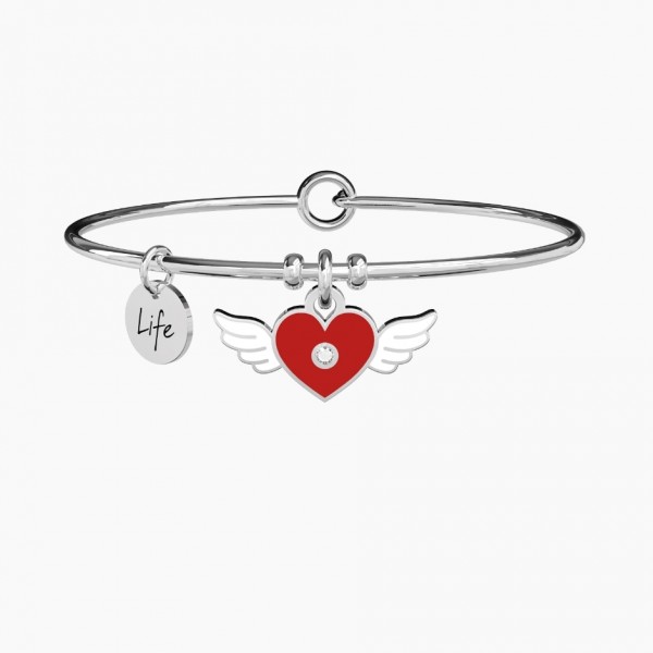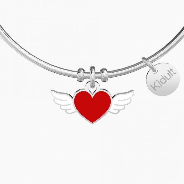 Bangle in acciaio con ciondolo a forma di cuore alato smaltato.
