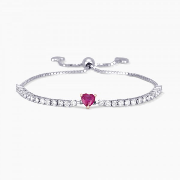 Bracciale tennis regolabile in argento bicolore con zirconi e cuore in rubino sintetico.