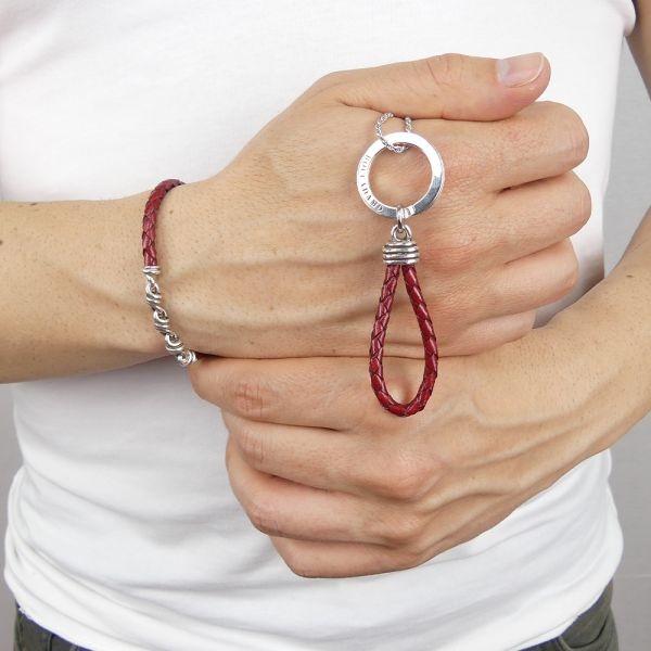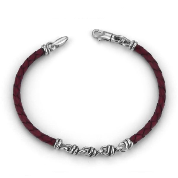 Bracciale Boccadamo scooby doo vintage in pelle rossa con inserto centrale composto da maglie in argento brunito 925 dalla lavorazione a nodo. Lunghezza 21,5 cm.