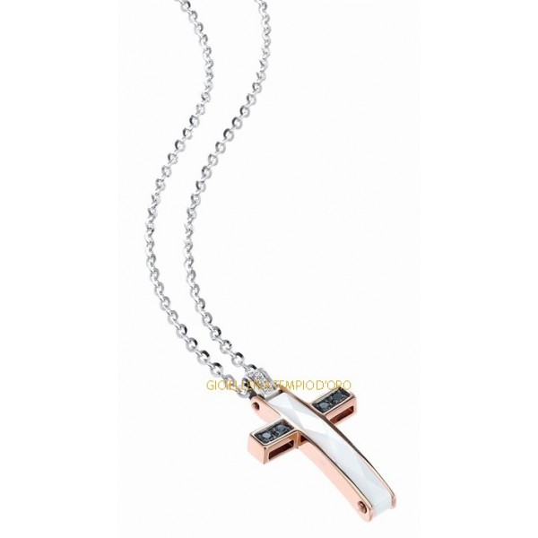 Collana croce in oro bianco e rosa 750% 18 kt, diamanti bianchi taglio brillante ct 0,01,diamanti neri taglio brillante ct 0,06 KC005BR-B