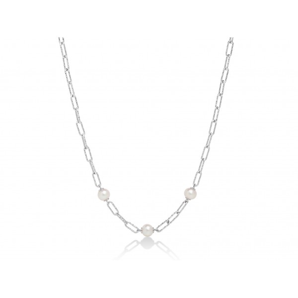 Collana Miluna in argento e perla della collezione Miss Italia , con tre perla dal diametro 6,5-7, lunghezza della collana 42 + 2 cm. Si allegano astuccio, garanzia e shopper lusso.