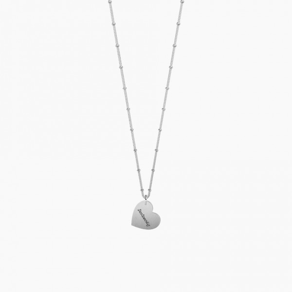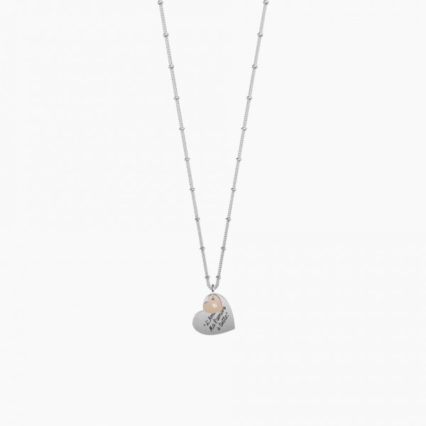 Collana corta in acciaio con ciondolo satinato a cuore, ciondolo rosé a cuore e catena groumette con anellini.