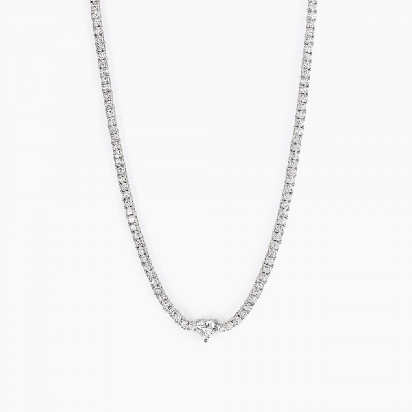 Girocollo tennis in argento con zirconi e zircone centrale a cuore.