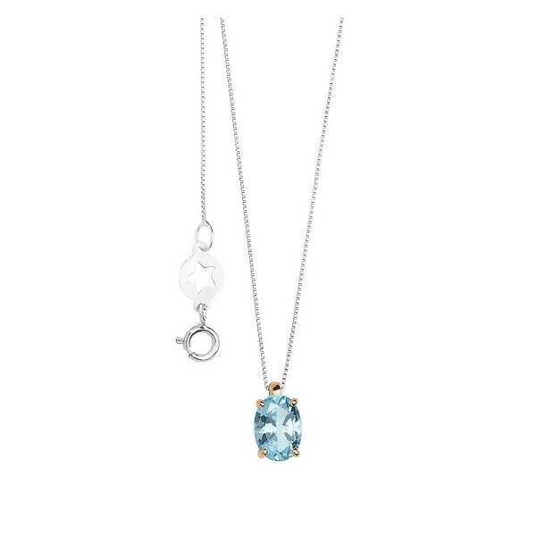 Collana Comete Gioielli, collezione Fantasia di colore, in Oro bianco e Oro rosa 750,con Topazio ovale CT 0.80, dimensione 7x5. Lunghezza collana 42 cm.