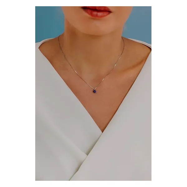 Collana Comete Gioielli, collezione storia di luce,in oro bianco 750%,zaffiro colore blu di forma rotonda Ct 0,58,diamante taglio brillante Ct 0,015. colore G purezza SI.
