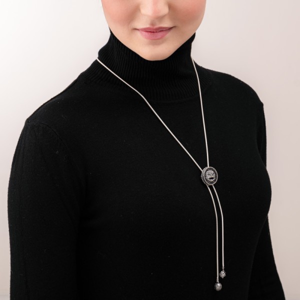 Collana Gerardo sacco,Saliscendi in argento Sterling con maschera dell'Arcimboldo e Cubic Zirconia. Diametro maschera 1,7 cm . Lunghezza collana 88 cm c.ca
