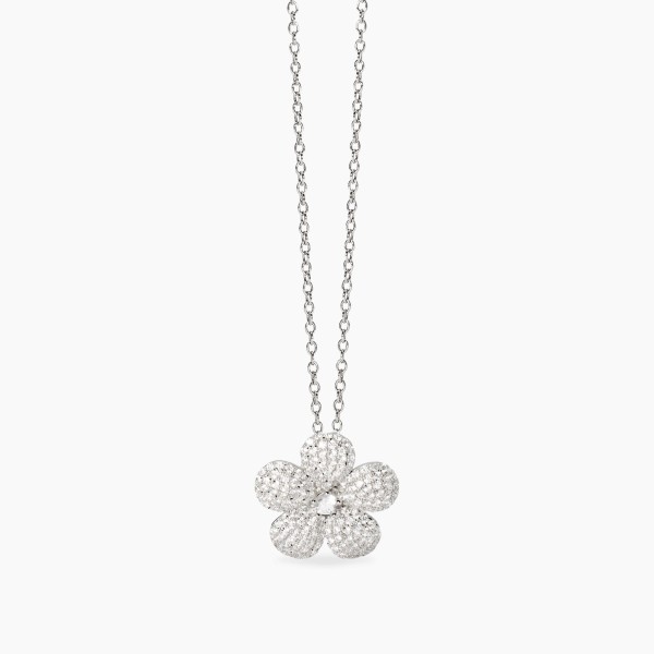 Girocollo in argento con catena forzatina diamantata e ciondolo fiore in zirconi.