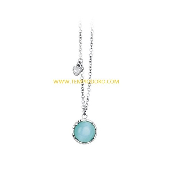 Collana in Acciaio 316L con Swarovski bianco Rodiata Occhio di gatto (fibra ottica) Chiusura Moschettone Lunghezza 45 cm regolabile Si allegano garanzia astuccio e shopper