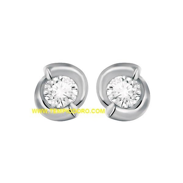 Orecchini Punto Luce, in oro bianco 750%, diamante naturale taglio brillante, CT 0.14 ,purezza VVS,colore G-H.