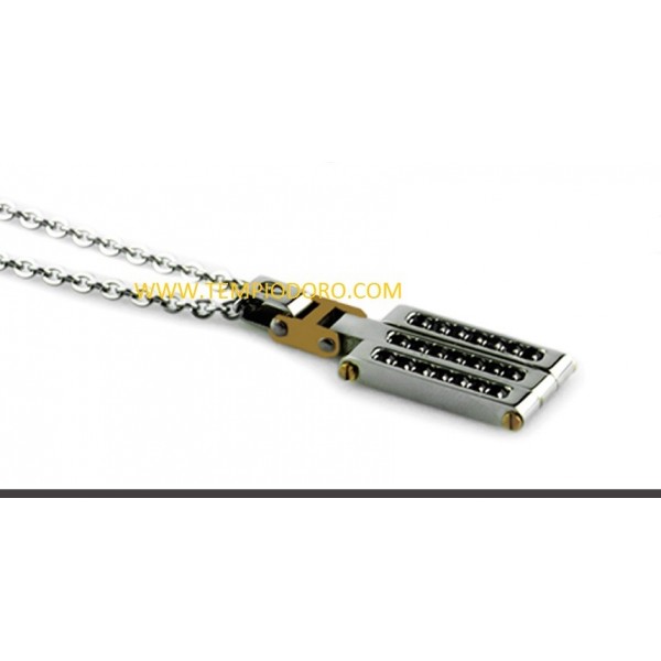 Pendente in Acciaio e Pietre Nere Trattamenti in Ip coffee Si allegano garanzia astuccio e shopper
