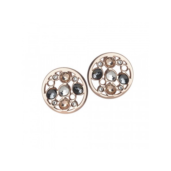 Orecchini a lobo in bronzo placcato oro rosa (diametro cm 2,5) con decoro di cristalli Swarivski crystal, peach e silver night. Si allegano astuccio,garanzia e shopper lusso.
