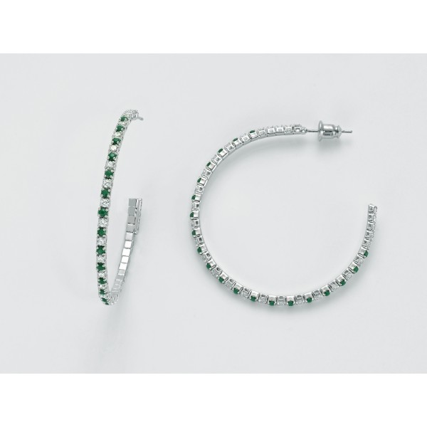 Orecchini Kiara,in acciaio con cubic zirconia di colore bianco e verde. Diametro 4,3 cm .