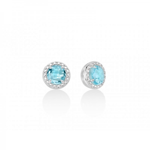 Orecchini Miluna tondi gemma del cielo , in argento 925% e topazio azzurro CT 2,00.