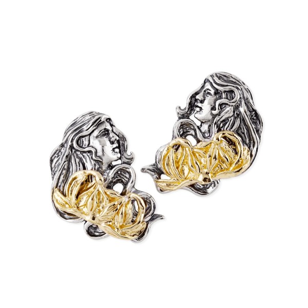 Orecchini Gennaio in Argento 925/000 con volto di Venere cesellato a mano e simbolo del mese, il bucaneve, in argento dorato. Un accessorio perfetto per ogni occasione, un gioiello che parla di te. altezza 2,2 cm.