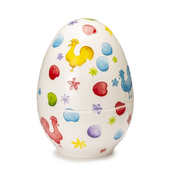 Uovo Palais Royal, in porcellana, con fine decorazione galli.