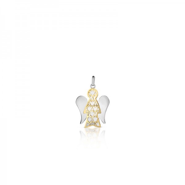 pendente angelo "mini" in oro giallo e ali in oro bianco con laccetto in filo cerato nero incluso - angelo: base 1,2 cm - altezza 1,5 cm. Si allegano garanzia,astuccio,confezione lusso e shopper