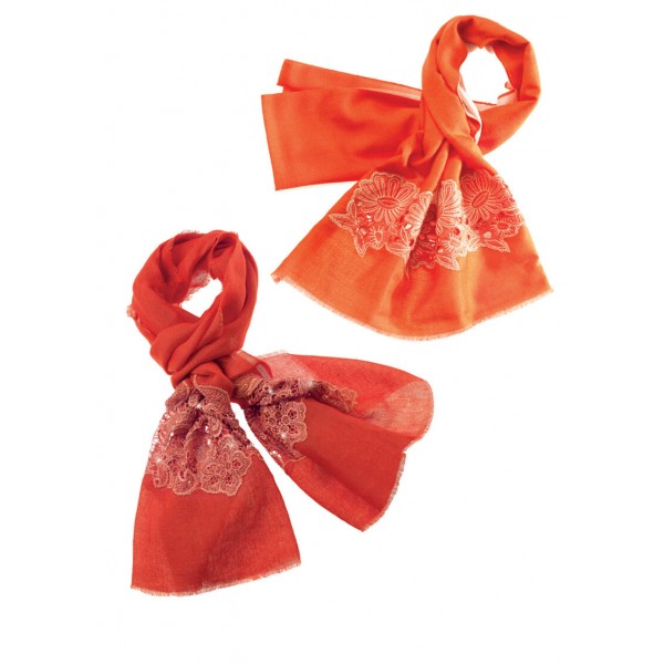 STOLA OTTAVIANI IN LINO ARANCIONE CON RICAMI.